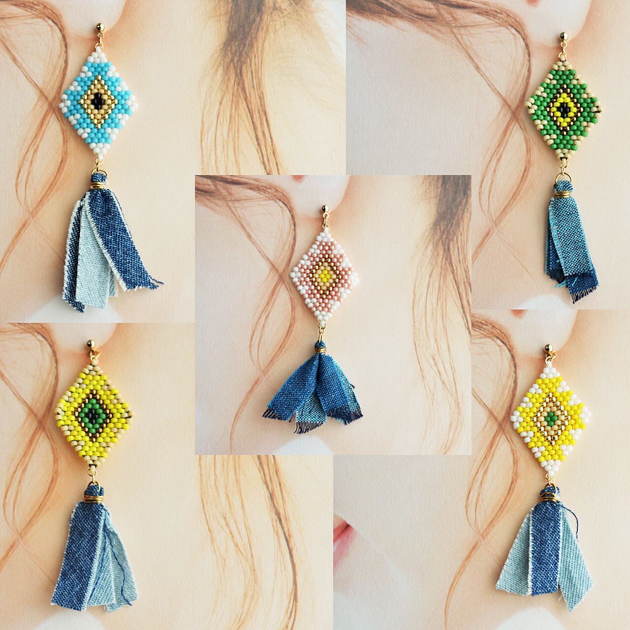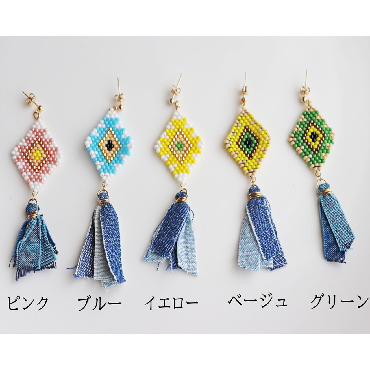 手作りのデニムタッセルも配色を合わせております♡